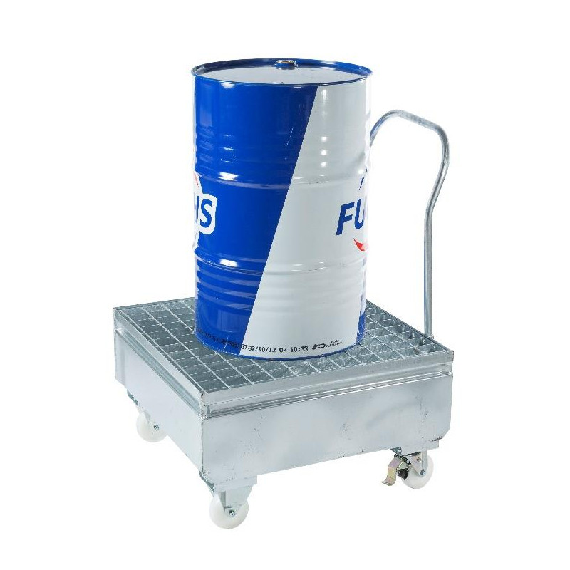 Carro de retención para 1 bidón de 200 l de acero galvanizado. Transporte sus bidones de forma segura evitando cualquier derrame accidental.